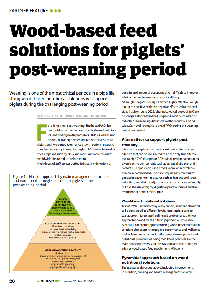 Wood-based feed solutions for piglets’ post-weaning period