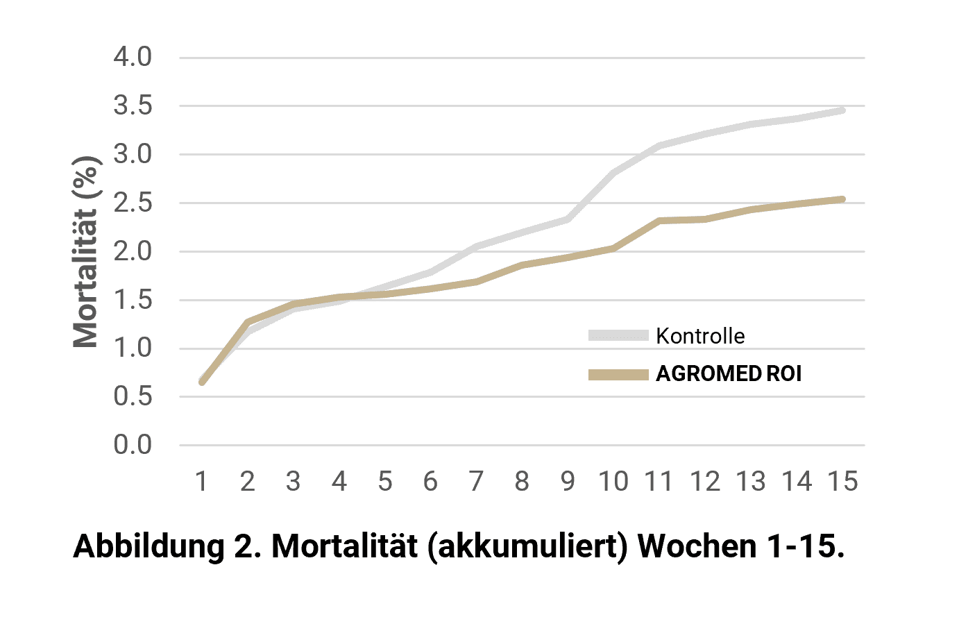 Im Versuch blieb die Mortalität der supplementierten Gruppe niedrig, sogar leicht unter jener der Kontrollgruppe (Abbildung 2). Das bedeutet nicht, dass die Tiere keinen Belastungen ausgesetzt waren, vielmehr zeigt es, dass sie besser mit diesen Belastungen umgehen konnten. Diese Ergebnisse erlauben den Rückschluss, dass eine Futterergänzung mit AGROMED ROI dazu beigetragen hat, dass die Tiere Stresseinflüsse besser kompensieren konnten, ohne in schwere klinische Verläufe abzurutschen. In zahlreichen wissenschaftlichen Studien wurde nachgewiesen, dass Holzlignane entzündungshemmende und antioxidative Wirkungen haben und damit die Darmgesundheit nachhaltig unterstützen können.